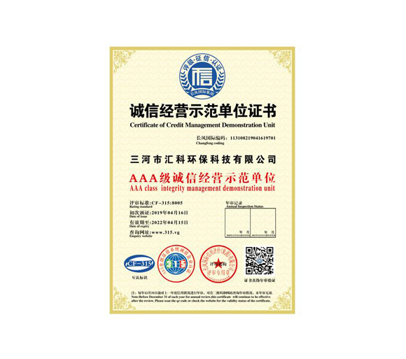證,ISO14001環(huán)境管理體系認證,ISO45001職業(yè)健康安全管理體系認證,AAA級誠信經營示范單位,質量誠信AAA品牌